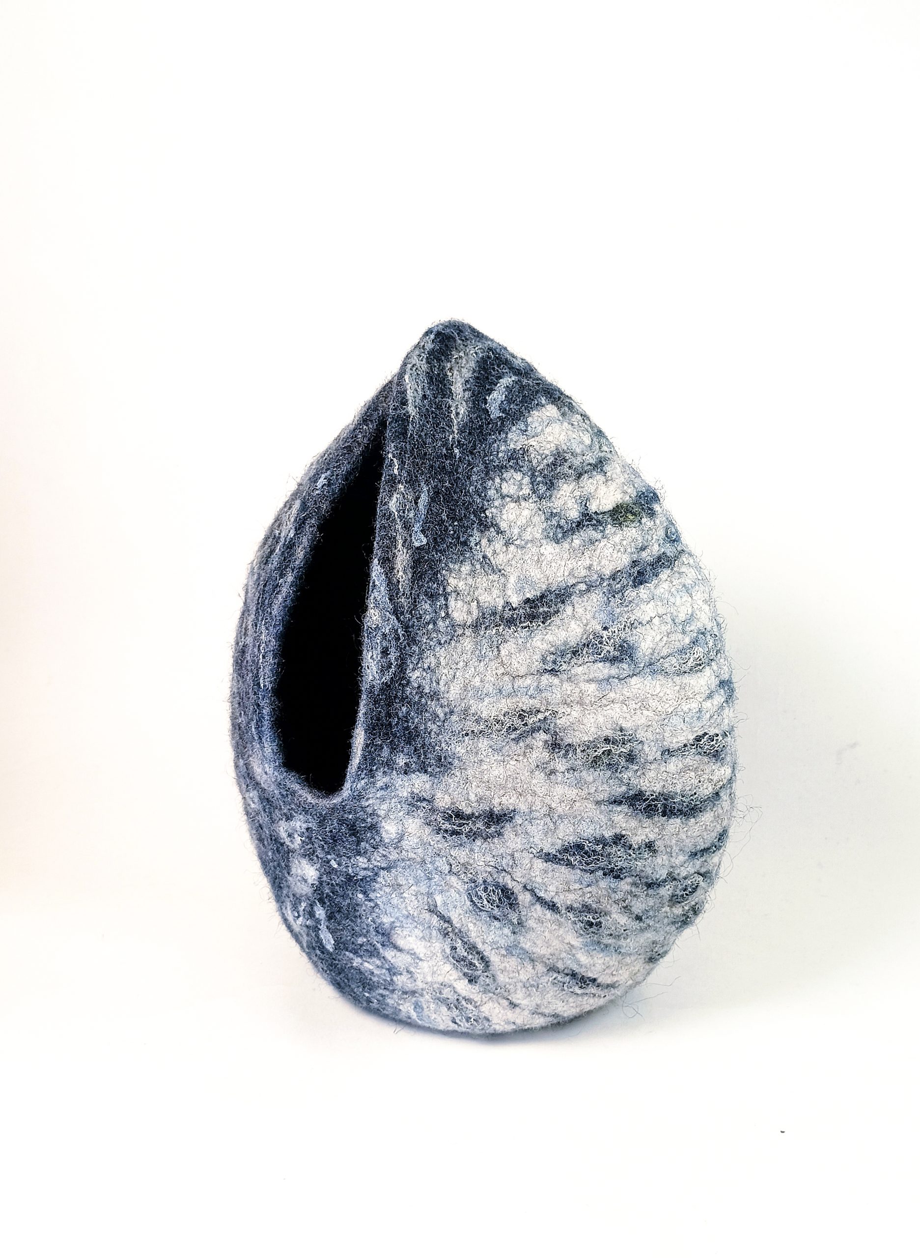 Sculpture Nautile Feutre bleu Indigo Ecru